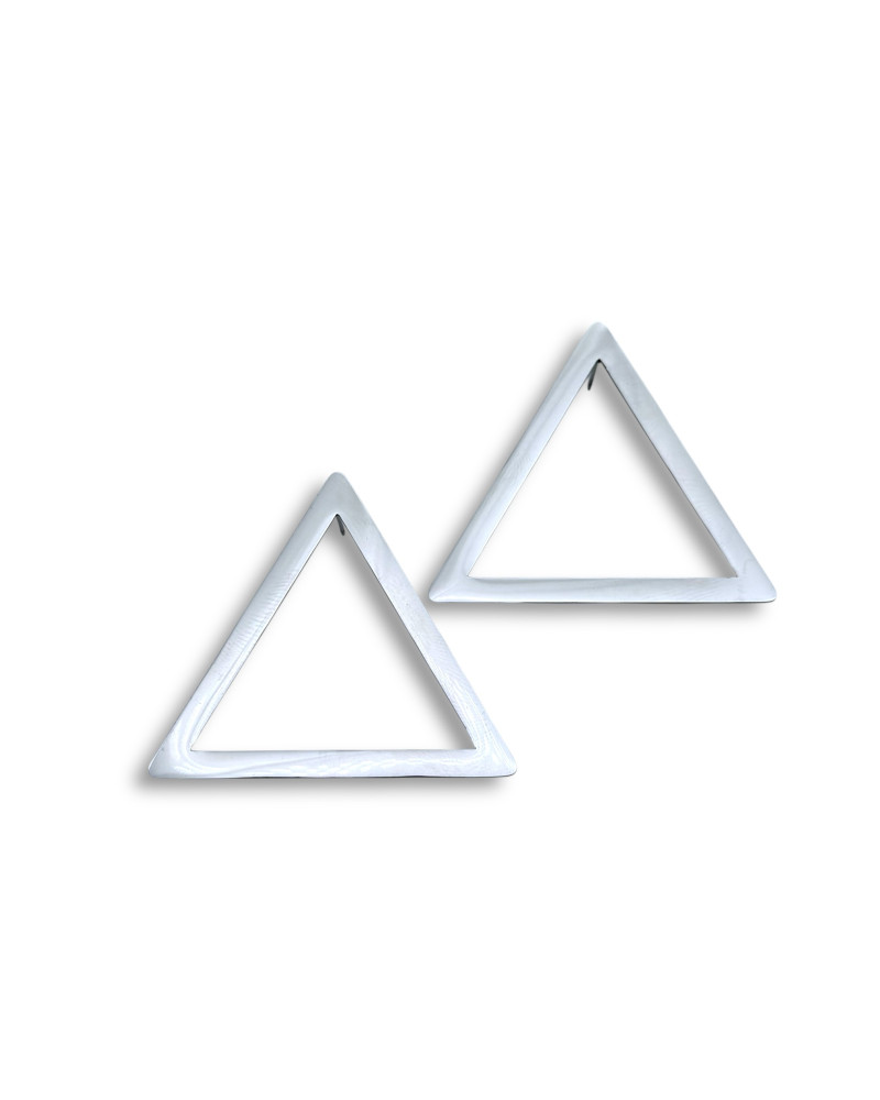 El triángulo abierto crea una declaración gráfica contundente, mientras que el acero inoxidable dorado aporta un brillo sutil sin excesos. Minimalistas pero impactantes.