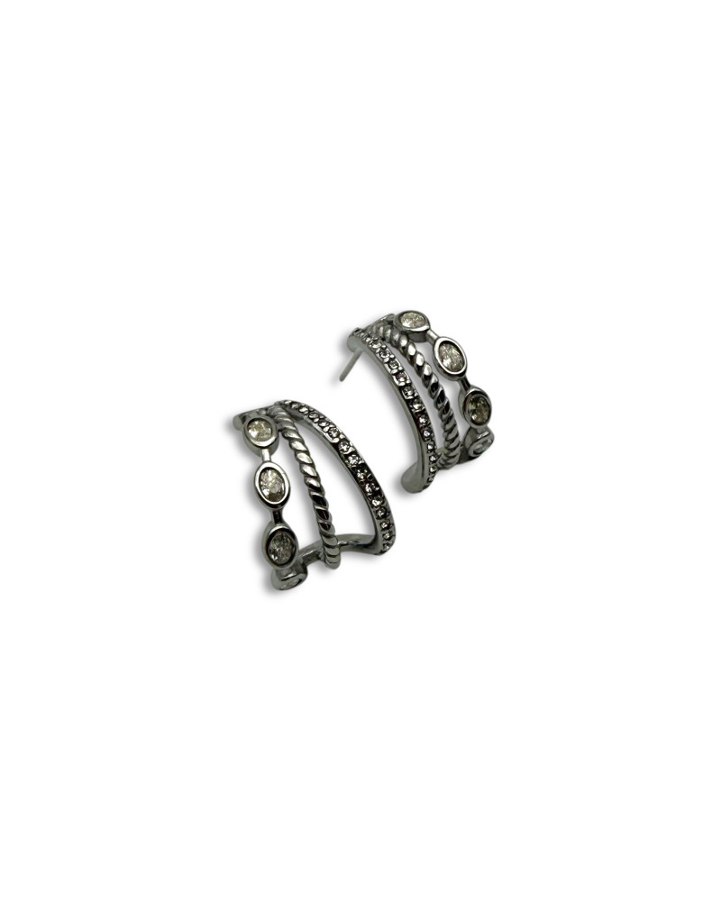 El acabado plateado le da un toque moderno y elegante, mientras que los cristales aportan el brillo justo para realzar cualquier look. Estos pendientes son impactantes sin ser excesivos, perfectos tanto para el día a día como para la noche.